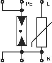 Per la protezione di sistemi di consumo contro le sovratensioni transitorie provocate da fulmini diretti e indiretti e da operazioni di commutazione, uso in conformità con IEC 60364-5-53 sezione 534, iI in conformità a IEC 61643-1, Tipo SPD T1, T2 in conformità alla norma EN 61643-11, protezione contro sovratensione classi III e IV in conformità con IEC 62305