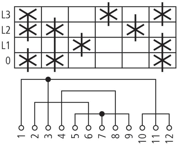 EATON INDUSTRIES - Selettori amperometrici T0 20 A a comando rinviato 3 Unità costruttive Contatti 6 90° permanente con posizione 0 L3-0-L1-L2 numero di pr T0-3-8048/Z.