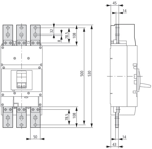 Gli accessori opzionali per gli interruttori automatici della serie NZM offrono una gamma completa di opzioni di applicazione in tutto il mondo. Il montaggio è sempre flessibile e facile grazie ai gruppi di funzioni modulari. Note: kit di conversione da NZM14 a NZM4. Stessi collegamenti di NZM14. Il codice contiene parti per entrambi i lati dell’interruttore. 3 estensioni di connessione sul lato di uscita. 3 estensioni di connessione sul lato dello sganciatore termico. 1 calotta lunga per il lato di uscita. Dima di foratura su carta inclusa nelle istruzioni di montaggio e manutenzione
