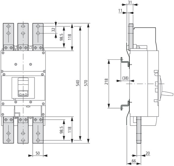 Gli accessori opzionali per gli interruttori automatici della serie NZM offrono una gamma completa di opzioni di applicazione in tutto il mondo. Il montaggio è sempre flessibile e facile grazie ai gruppi di funzioni modulari. Note: kit di conversione da NZM14 a NZM4. Stessi collegamenti di NZM14. Il codice contiene parti per entrambi i lati dell’interruttore. 3 estensioni di connessione sul lato di uscita. 3 estensioni di connessione sul lato dello sganciatore termico. 1 calotta lunga per il lato di uscita. Dima di foratura su carta inclusa nelle istruzioni di montaggio e manutenzione
