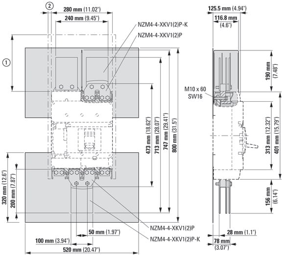 EATON INDUSTRIES - Set di collegamento piastre isolanti 4p 1p NZM4-4-XKVI1P.