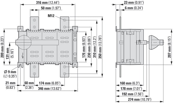EATON INDUSTRIES - Sezionatore di carico DC 1000A, 2 poli, 1 NA, 1 NC, maniglia rotativa grigia, Da incasso in sistemi di distribuzione modulare.