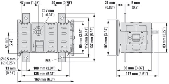 EATON INDUSTRIES - Sezionatore di carico DC 160A 2P, 2 NA, 2 Contatto NC, maniglia rotativa grigia, Da incasso in sistemi di distribuzione modulare.