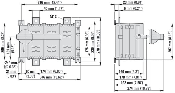 EATON INDUSTRIES - Sezionatore di carico DC, 800A, 2 poli, 1 NA, 1 NC, maniglia grigia premontata, da incasso in sistemi di distribuzione modulare.