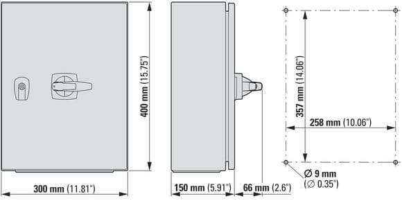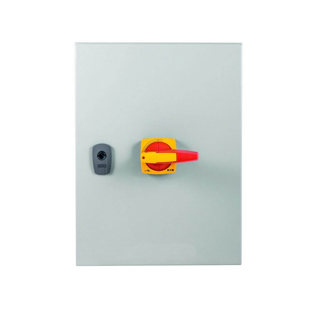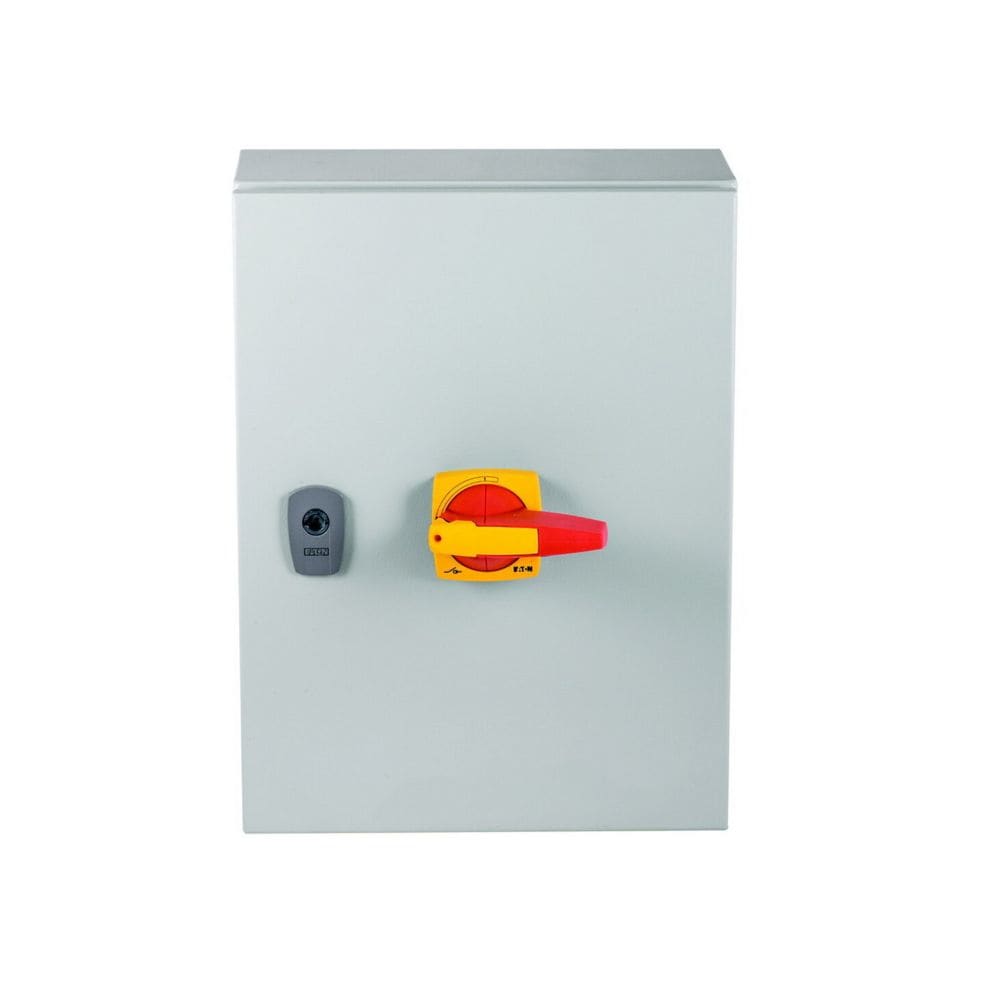 EATON INDUSTRIES - Sezionatore di potenza DMM 160A 4 poli con funzione di spegnimento di emergenza, maniglia rotativa rossa e anello di bloccaggio giallo in custodia DMM-160/4/SE4/P-R.