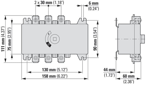 sezionatore di potenza, Gamma di prodotti: sezionatore di potenza, interruttore principale, interruttore di manutenzione, Riferimento gruppo parti: DMV, cob manopola grigia, Note: Con albero metallico per 400 mm di profondità del quadro, Informazioni sull'apparecchiatura fornita: contatto ausiliario montato dall'utente., 3 poli, Grado di protezione: Frontale IP65, Design: fissaggio posteriore, Potenza nominale d'impiego AC-23A, 50 - 60 Hz 400 V: P = 147 kW, Corrente nominale ininterrotta: Iu = 250 A, Conformità alle norme: IEC/EN 60947, VDE 0660, IEC/EN 60204, Sezionatori di potenza secondo IEC/EN 60947-3