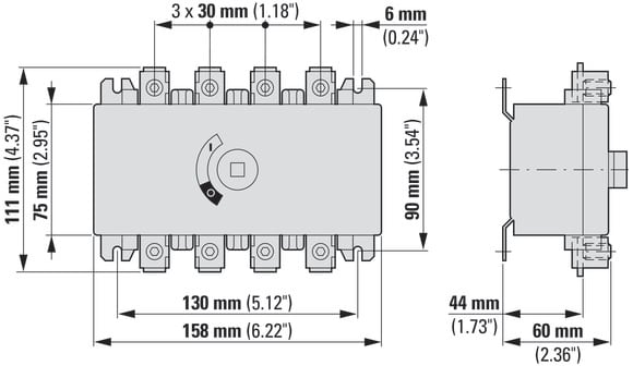EATON INDUSTRIES - Sezionatore di potenza DMV 250A 3P+N, funzione di arresto opzionale, senza maniglia rotativa e albero di trasmissione.