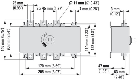 EATON INDUSTRIES - Sezionatore di potenza DMV 400A 3 poli con funzione di spegnimento di emergenza, maniglia rotativa rossa e anello di bloccaggio giallo, albero.