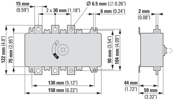 sezionatore di potenza, Gamma di prodotti: sezionatore di potenza, interruttore principale, interruttore di manutenzione, Riferimento gruppo parti: DMV, Funzione di arresto: opzionale, Senza maniglia rotativa e albero di trasmissione, Note: contatti visibili, Informazioni sull'apparecchiatura fornita: contatto ausiliario montato dall'utente., materiali di collegamento inclusi, 3 poli, Grado di protezione: IP00, IP20 con coprimorsetti, Design: montaggio a vista, Potenza nominale d'impiego AC-23A, 50 - 60 Hz 400 V: P = 90 kW, Corrente nominale continua: Iu = 160 A, Tecnica di collegamento: Terminale a vite, dimensioni foratura 6,5 mm, Standard: IEC/EN 60947, VDE 0660, IEC/EN 60204