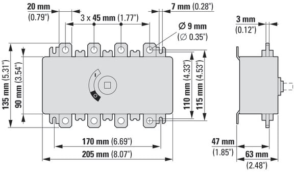 sezionatore di potenza, Gamma di prodotti: sezionatore di potenza, interruttore principale, interruttore di manutenzione, Riferimento gruppo parti: DMV, Funzione di arresto: opzionale, Senza maniglia rotativa e albero di trasmissione, Note: contatti visibili, Informazioni sull'apparecchiatura fornita: contatto ausiliario montato dall'utente., materiali di collegamento inclusi, 3 poli + SN (diretto), Grado di protezione: IP00, IP20 con coprimorsetti, Design: montaggio a vista, Potenza nominale d'impiego AC-23A, 50 - 60 Hz 400 V: P = 90 kW, Corrente nominale continua: Iu = 160 A, Tecnica di collegamento: foro di collegamento da 9 mm, Standard: IEC/EN 60947, VDE 0660, IEC/EN 60204, Sezionatori di potenza secondo IEC/EN 60947-3