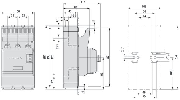 EATON INDUSTRIES - Sezionatore Fusibile 160A 3 Poli M8 Collegamento Piatto Max. 95 mm². 183029