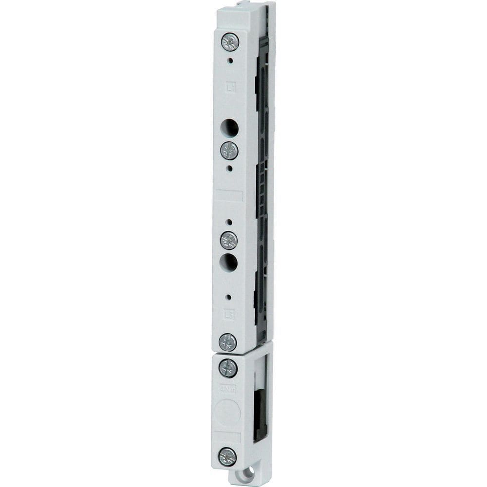 Supporto per sbarra collettrice IEC, sistema 60-mm, corrente nominale di esercizio Ie=630, poli= 4, utilizzabile per 12x5/10, 15x5/10, 20x5/10, 25x5/10, 30x5/10, con cursore per adattarsi alle rispettive dimensioni delle sbarre, con blocco vite all'interno, resistente a temperature fino a 120 °C, resistenza del binario CTI 200, autoestinguente secondo UL 94, RAL 7035, termoplastico, senza silicone, senza cloro, privo di alogeni, distanza tra i supporti per sistema a sbarre corrispondenti al diagramma di resistenza al cortocircuito