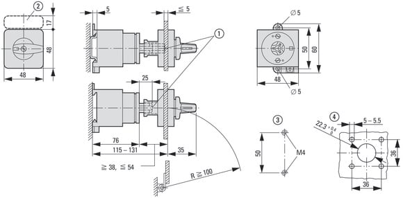 EATON INDUSTRIES - T0-4-8441/Z Invertitore di polarità a camme, 20 A, comando rinviato, 4 unità costruttive, contatti: 8, 60 gradi, permanente con posizione 0, 1-0-2, numero di progettazione.