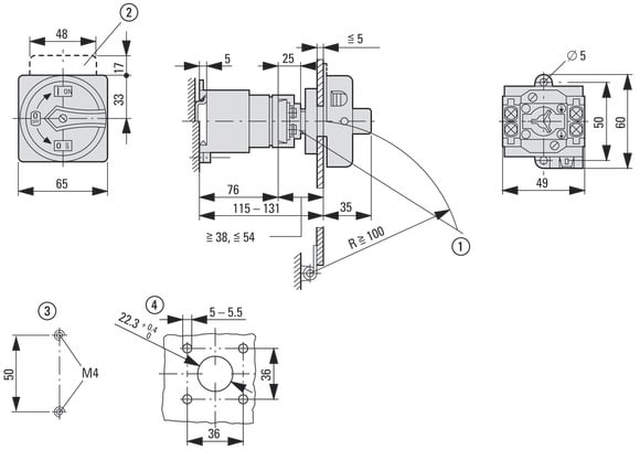 EATON INDUSTRIES - T0 Interruttore generale 20 A a comando rinviato 4 Unità costruttiva 6 poli 1 NA 1 NC Funzione di arresto d'emergenza con maniglia rotativa 15682/V/SVB COMM A CAMME.