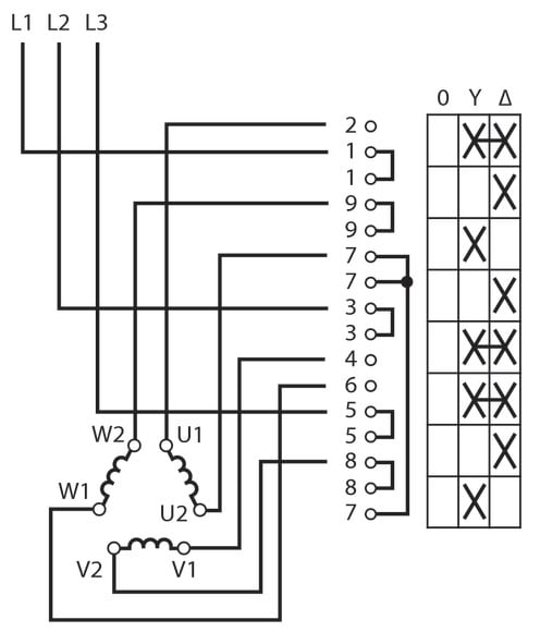 EATON INDUSTRIES - T3-4-3/E commutatore a camme stella-triangolo, 32A, incasso, 4 unità contatto, 8 contatti, 60°, permanente, posizione 0 (Off), 0-Y-D.
