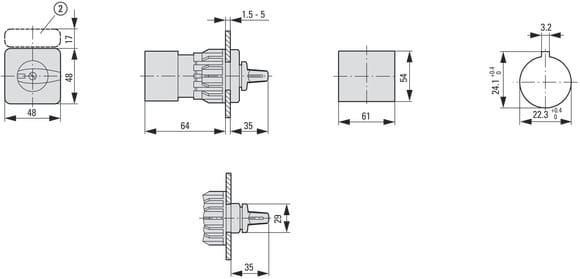 EATON INDUSTRIES - T3 Commutatore 32A da incasso a fissaggio centrale, 1 Unità costruttiva, Contatti: 2, 60° permanente con posizione 0, 1-0-2, numero di proget.