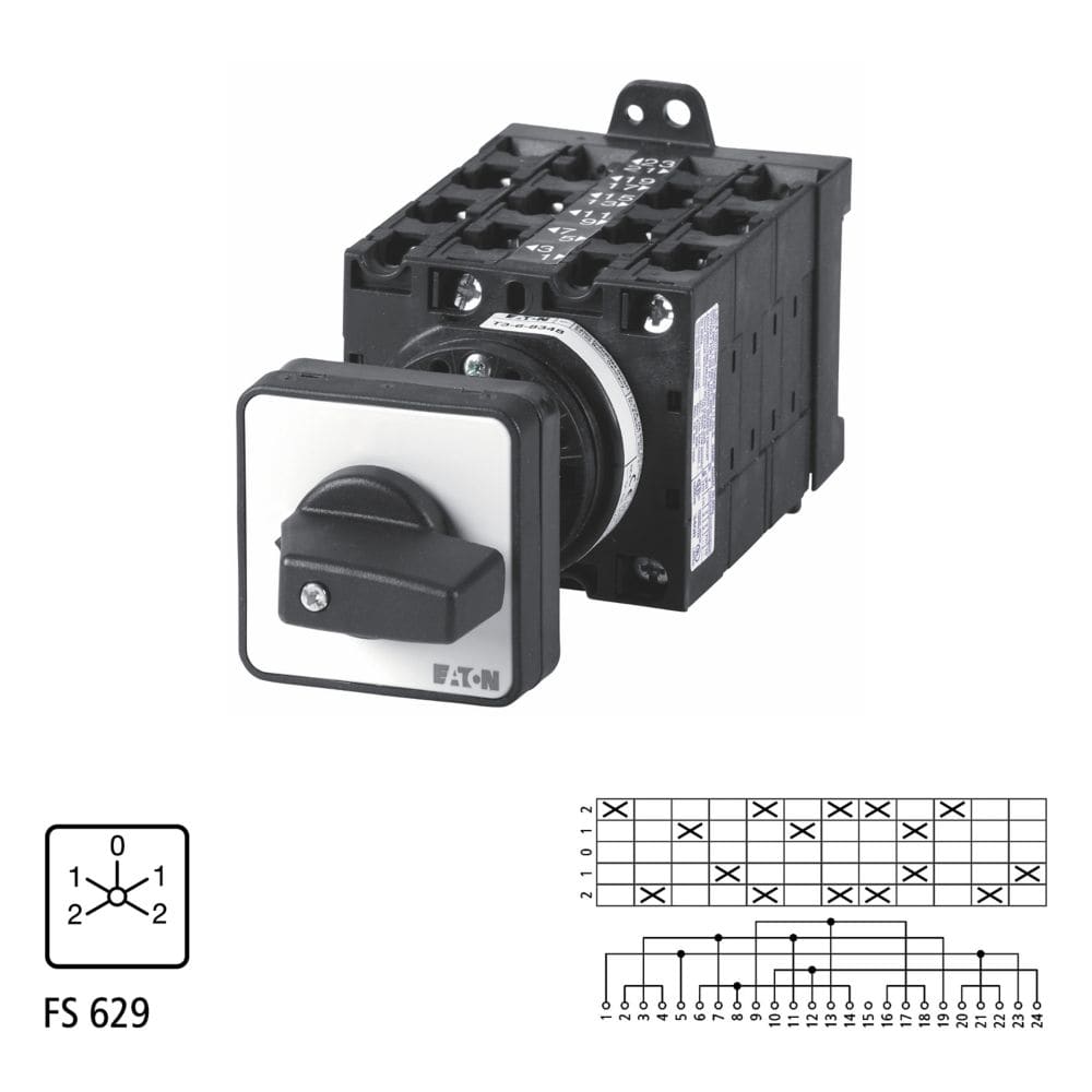 EATON INDUSTRIES - T3 Interruttore a piu velocita di inversione, 32A, montaggio posteriore, 6 unita di contatto, Contatti: 12, 60 gradi, permanente, Con posizione 0 Off.