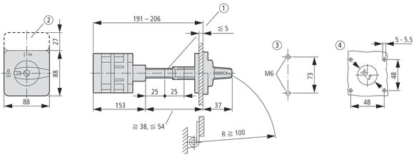 Interruttore speciale, Gamma di prodotti: Interruttore speciale, Riferimento gruppo parti: T5, Note: versione personalizzata in base al modulo, Grado di protezione: Frontale IP65, Design: fissaggio posteriore, Potenza nominale d'impiego AC-23A, 50 - 60 Hz 400 V: P = 55 kW, Corrente nominale ininterrotta: Iu = 100 A, 7 Unità costruttiva/e, Conformità alle norme: IEC/EN 60947, VDE 0660, IEC/EN 60204, Sezionatori di potenza secondo IEC/EN 60947-3