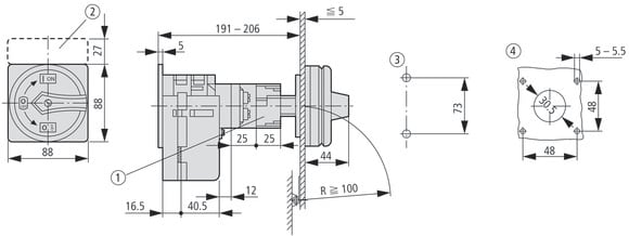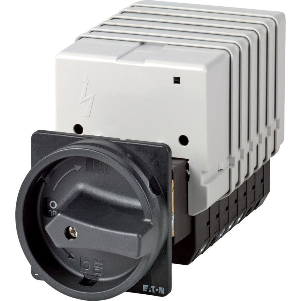 EATON INDUSTRIES - T5 Interruttore Generale 100A Comando Rinviato 7 Unità Costruttive 14 Poli Funzione di Arresto con Maniglia Rotativa Nera e Corona di Bloc