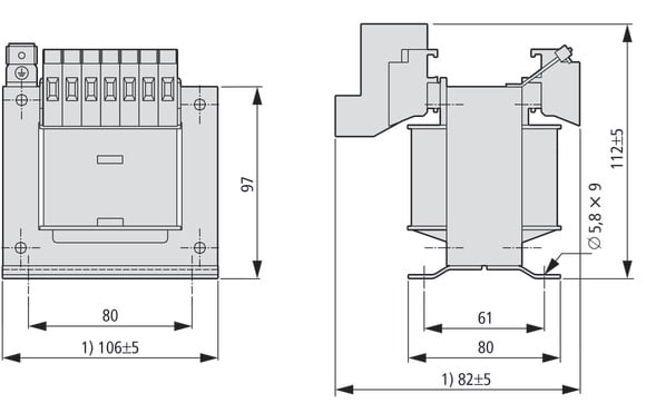 EATON INDUSTRIES - Trasformatore di comando monofase 0,2 kVA, tensione d'ingresso 208 – 600 V, tensione di uscita 2 x 115 V, UTI0,2-115.