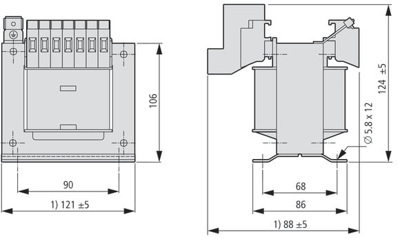 EATON INDUSTRIES - Trasformatore di comando monofase 0,315 kVA, tensione d'ingresso 208-600 V, tensione di uscita 2 x 115 V UTI0,315-115. 206925