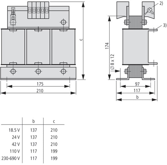 EATON INDUSTRIES - Trasformatore trifase 1 kVA, tensione ingresso 50 – 950± 5 % V, uscita 50 – 950 V DTZ1,0(*/*)* 1000.