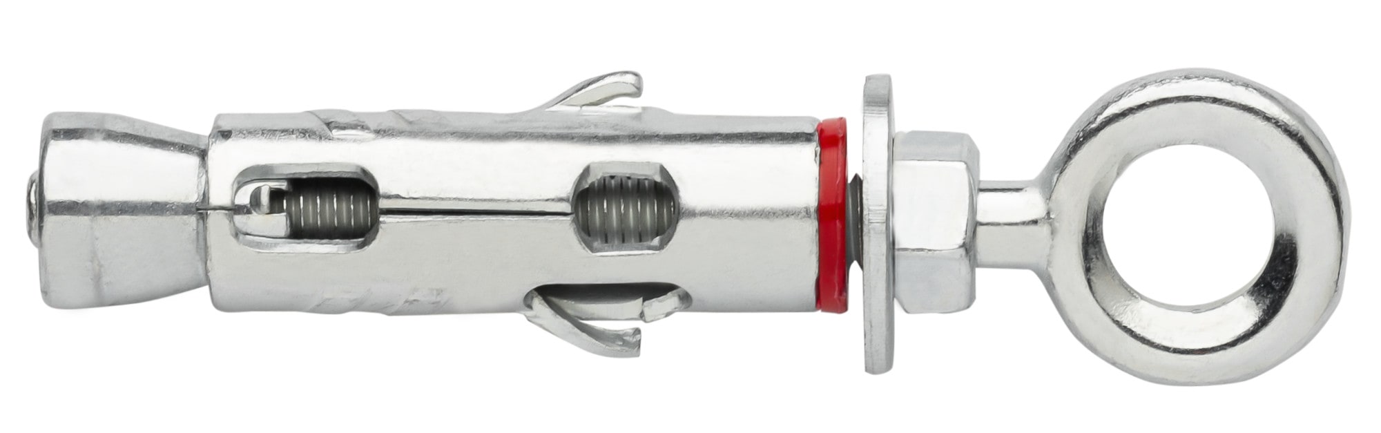 Ancorante ad espansione in acciaio zincato per fissaggi pesanti non passanti, su calcestruzzo non fessurato e materiali compatti resistenti. Versione con occhiolo chiuso. Ancorante per carichi elevati su calcestruzzo e materiali compatti resistenti. Installazione e serraggio perfetti grazie alle alette antirotazione. Tappo di protezione della filettatura dalla polvere di foratura. Gamma pre-assemblata con vari accessori per le diverse necessità. Strutture, profili e guide. Apparecchiature varie. Ringhiere, cancelli e inferriate. Staffaggi per impianti.