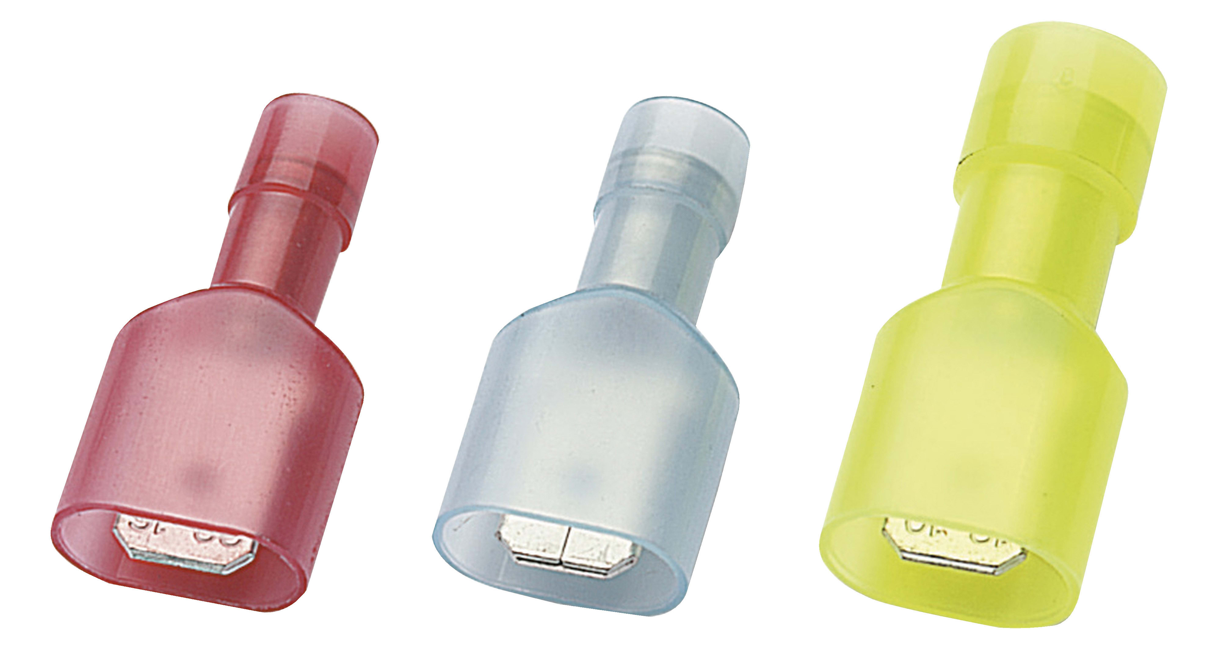 Terminali totalmente isolati in PVC con boccola antivibrante in rame. Rame ricotto e stagnato elettroliticamente per favorire l'aggraffatura al cavo. Senza alogeni. Connessione dei cavi.