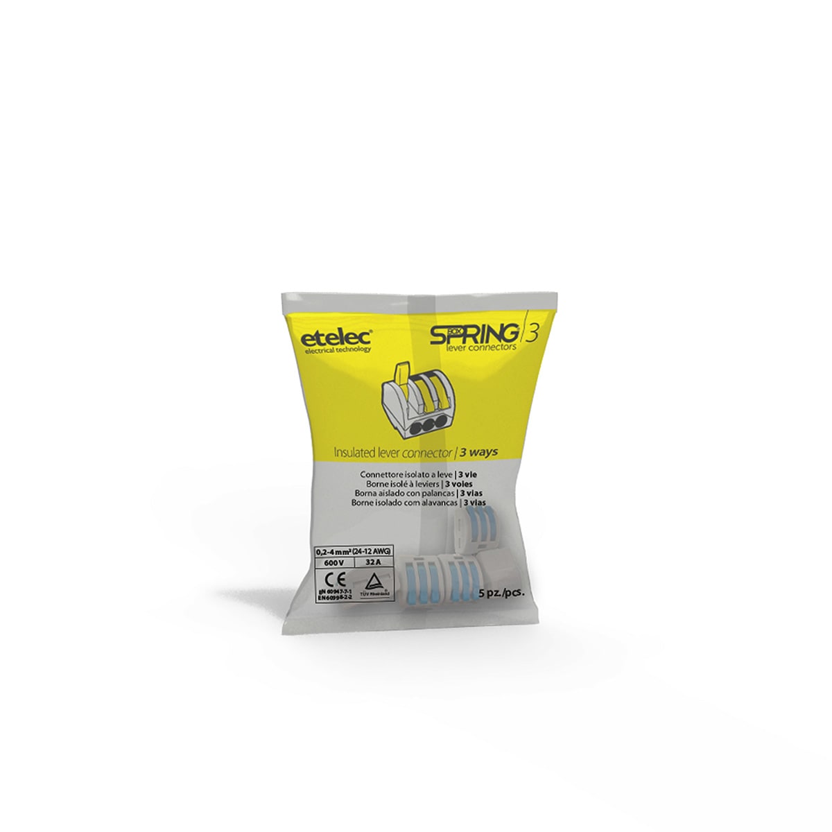 ETELEC - Connettore isolato a leve a 3 vie per connessioni elettriche di cavi bassa tensione 0,2-4 mm2 SBOX3