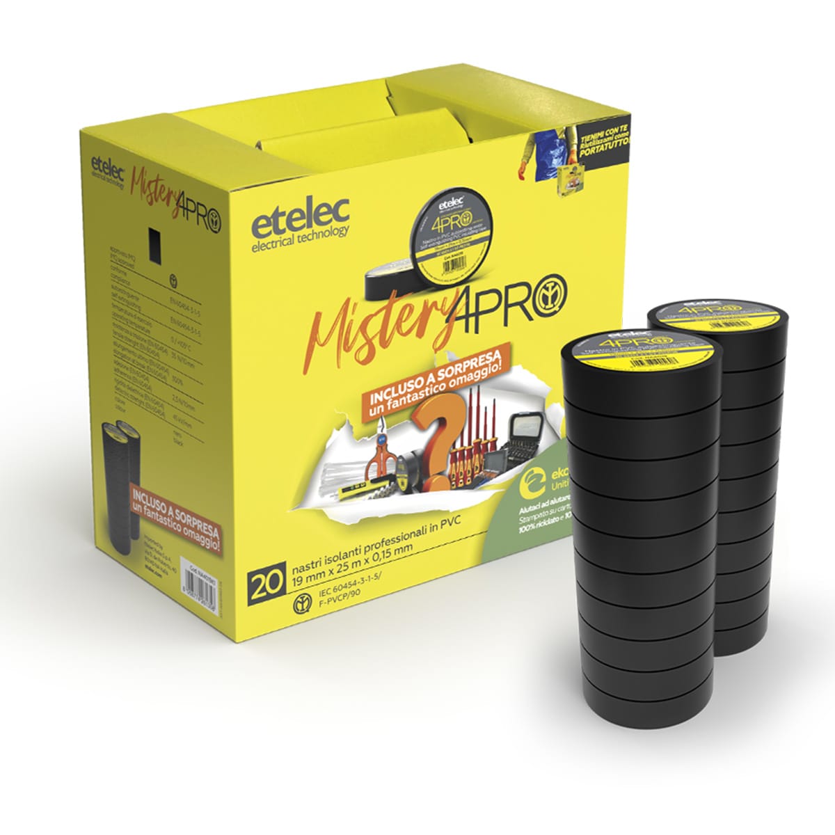 ETELEC - Nastri autoestinguenti professionali in PVC certificato IMQ 19x25x0,15 Nero Kit 20 pz + OMAGGIO NA8019K1