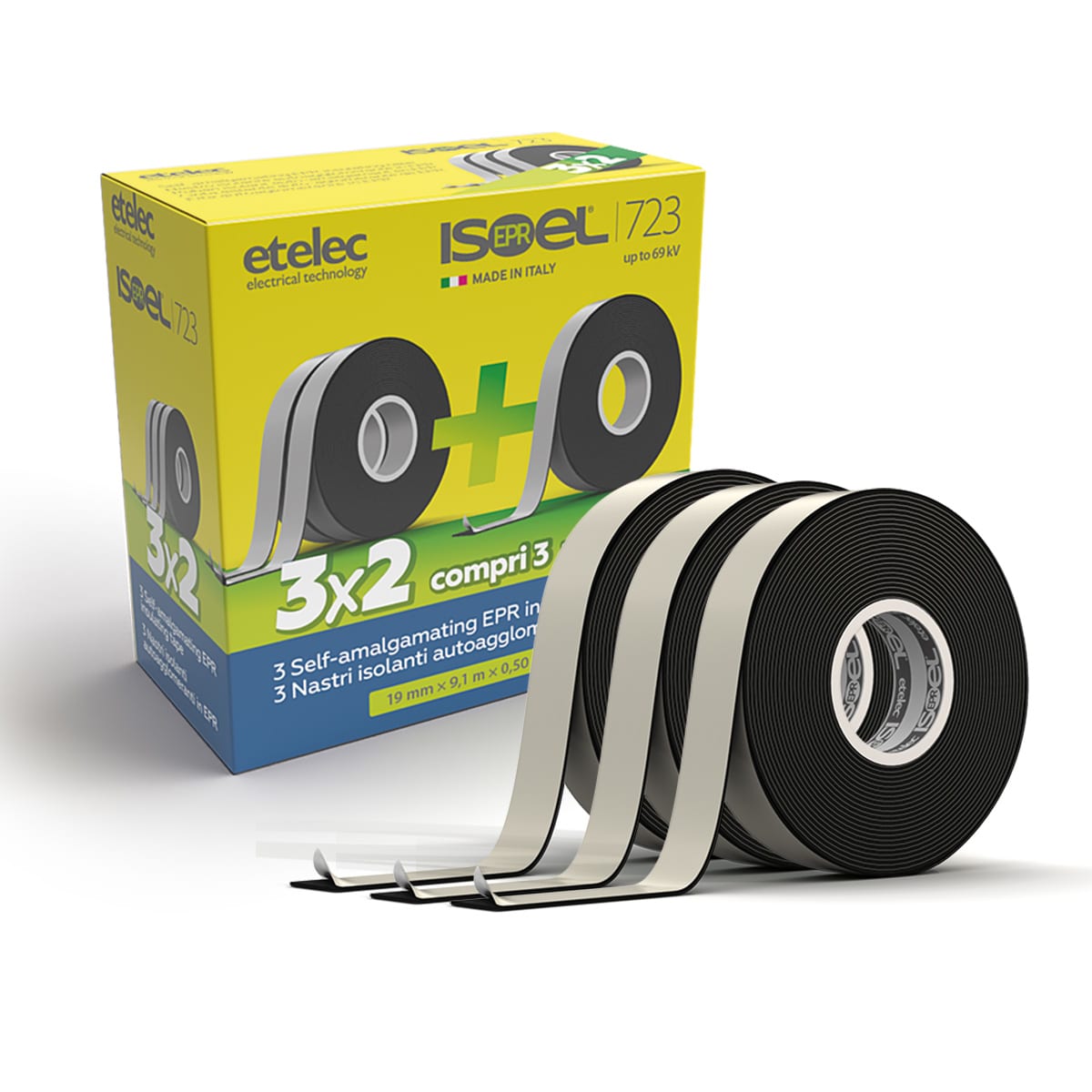 ETELEC - Nastro isolante autoagglomerante in EPR 19 mm x 9,1 m x 0,75 m Nero Kit 20 pz + OMAGGIO incluso NA4723K1