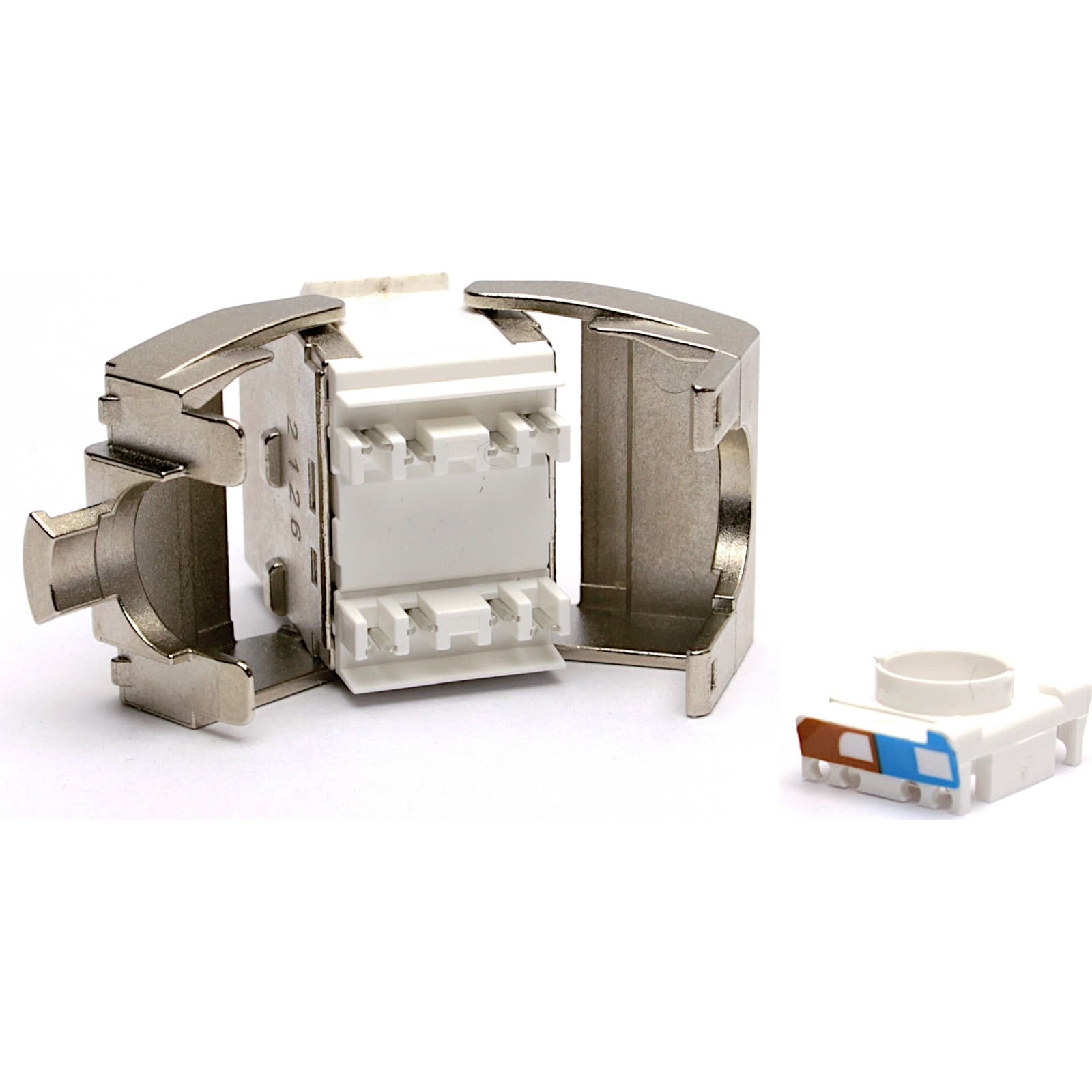 Il jack Keystone Excel di categoria 6A è un connettore RJ45 con terminazione toolless adatto per il montaggio in una vasta gamma di alloggiamenti, tra cui pannelli patch, mascherine, otturatori, scatole inserite a pavimento e alloggiamenti per la distribuzione nell’area di lavoro. Il connettore stesso è contenuto in un alloggiamento pressofuso in zinco di alta qualità, il quale si apre posteriormente a farfalla, in modo da visualizzare i punti di terminazione IDC. Una volta che i conduttori del cavo su cui effettuare la terminazione vengono inseriti in un cappuccio di gestione, il procedimento si completa facendo scattare le “ali a farfalla” esercitando una pressione lieve ma decisa.