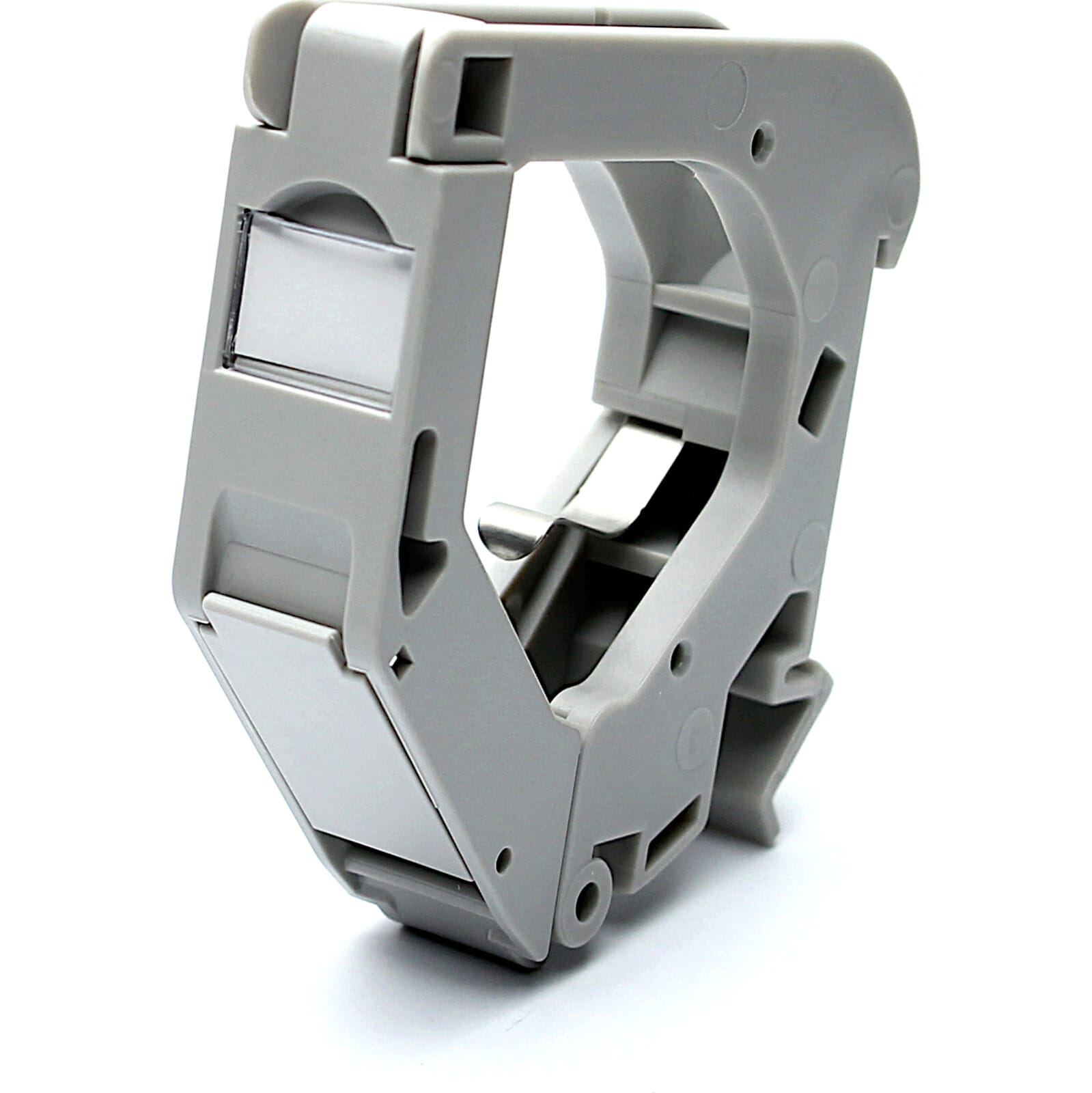 The Excel DIN Rail mounting bracket allows keystone jacks to be mounted singularly onto a standard 32mm DIN Rail at an angle to reduce bend radius and save space within the enclosures when mounted. Each mounting bracket has an integrated dust cover for protection on unused ports and individual labelling areas for identification. When used with Screened Keystone jacks, the grounding spring makes contact with the outer casing of the keystone jack to give a secure earthing point through to the Din Rail.