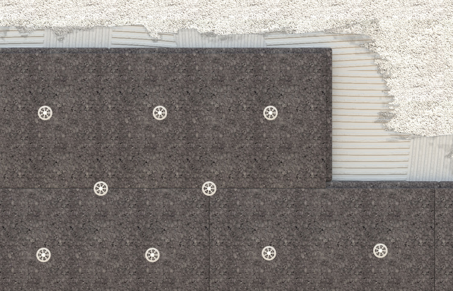 - Il disco aderisce perfettamente all’isolamento grazie al suo spessore di solo 2,5 mm. Questo permette l’applicazione economicamente vantaggiosa di strati di rasatura sottili.