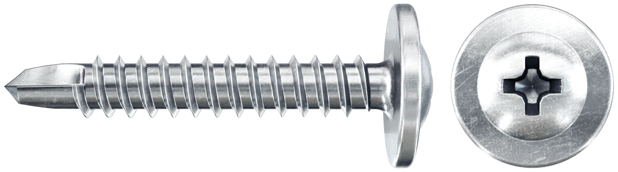 - Vite zincata bianca, con testa flangiata, impronta Phillips e punta autoperforante.