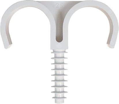 Clip fissatubo a battere per installazioni veloci senza tasselli. Avvolgente e robusta grazie alla nervatura di rinforzo.