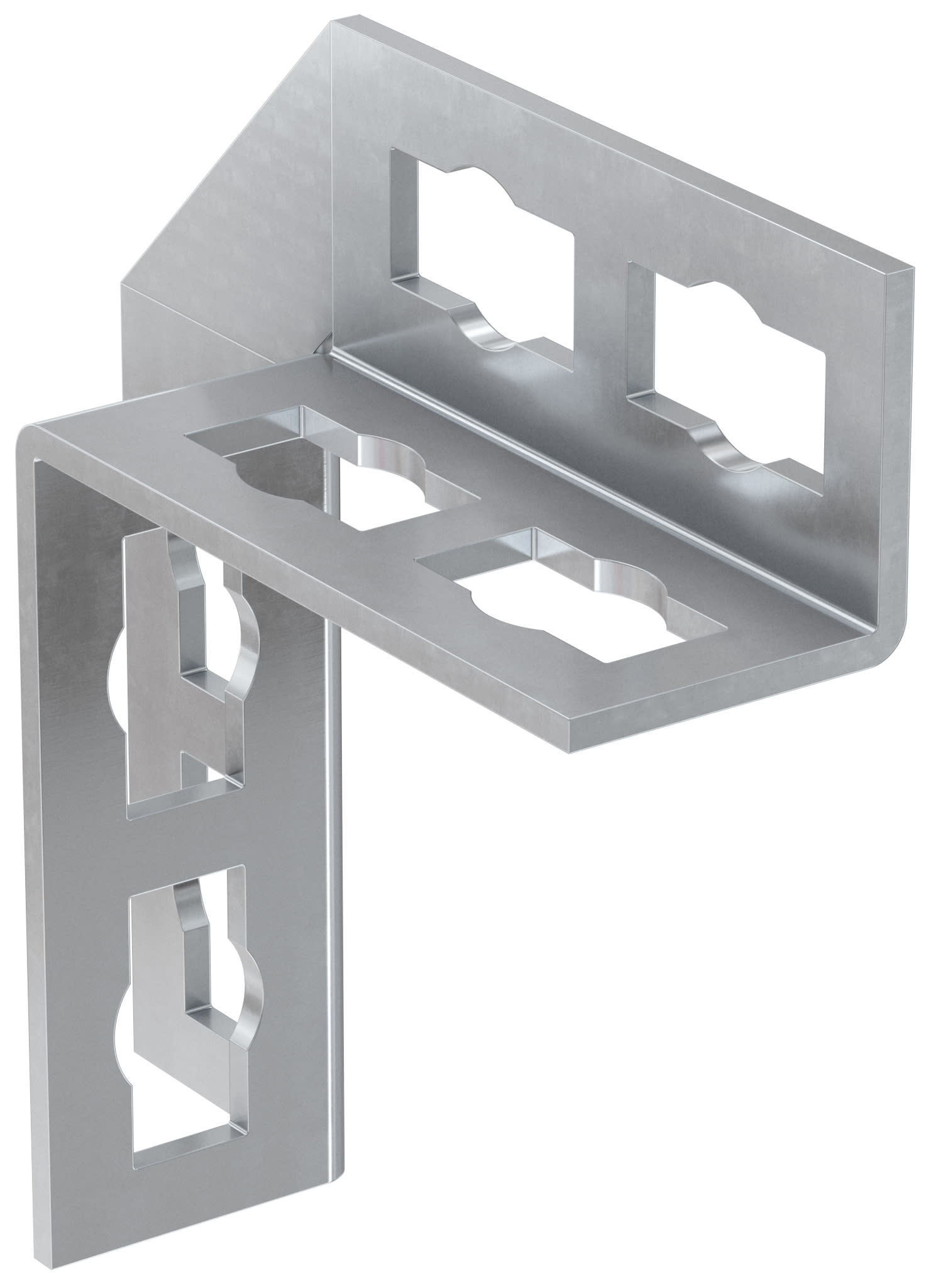 - La mensola di collegamento universale per la connessione di profilati FUS fornisce alla struttura di supporto un'elevata stabilità e sicurezza (si consiglia di utilizzarla in coppia).