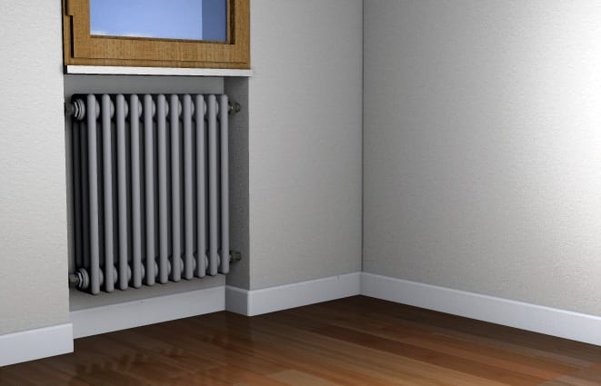 - Posizionare il radiatore alla corretta altezza sulla parete. Usando la livella, segnare la posizione delle 2 mensole per radiatori. Segnare quindi la posizione dei fissaggi.