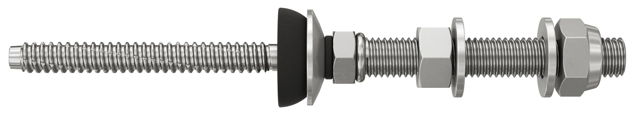 - Completo: la vite doppia filettatura STSI è fornita preassemblata con guarnizione in EPDM, dado per il serraggio e coppia di dadi per il collegamento alle staffe MW o SSP.