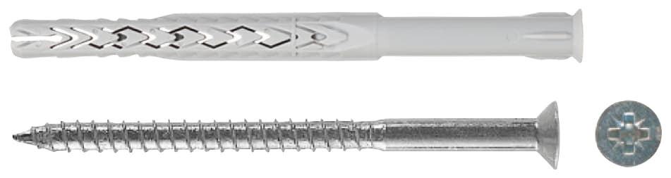 Tassello prolungato in nylon con vite a testa svasata piana ed impronta Torx