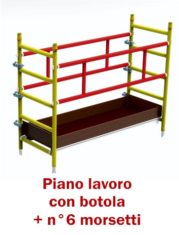 STRUTTURA B SBALZO LATERALE IN ALLUMINIO CON ELEMENTI AD AGGANCIO RAPIDO CON DIMENSIONI DI BASE mt 0,74x2,55 DOTATO DI: n?6 MORSETTI DI FISSAGGIO GIREVOLI IN ALLUMINO, n?2 PARAPETTI, n?1 PIANO LAVORO, n?1 FERMAPIEDE - VERSIONE CONFORME SECONDO NORMATIVA ITALIANA D.Lgs.n?81