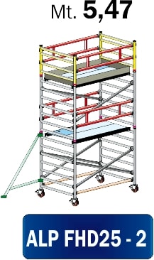 TRABATTELLO PROFESSIONALE IN ALLUMINIO CON ELEMENTI AD AGGANCIO RAPIDO ALTO mt 5,47 CON DIMENSIONI DI BASE mt 1,35x2,55 DOTATO DI: n?4 LIVELLATORI A VITE CON RUOTA 150mm ANTI-SCHIACCIAMENTO CON FRENO A DOPPIA LEVA, n?2 PIANI LAVORO COMPLETI, n?1 FERMAPIEDE, n?4 PARAPETTI, n?4 STAFFE STABILIZZATRICI REGOLABILI - VERSIONE CERTIFICATA SECONDO NORMATIVA EUROPEA EN1004-1/2 CON USO SENZA ANCORAGGIO