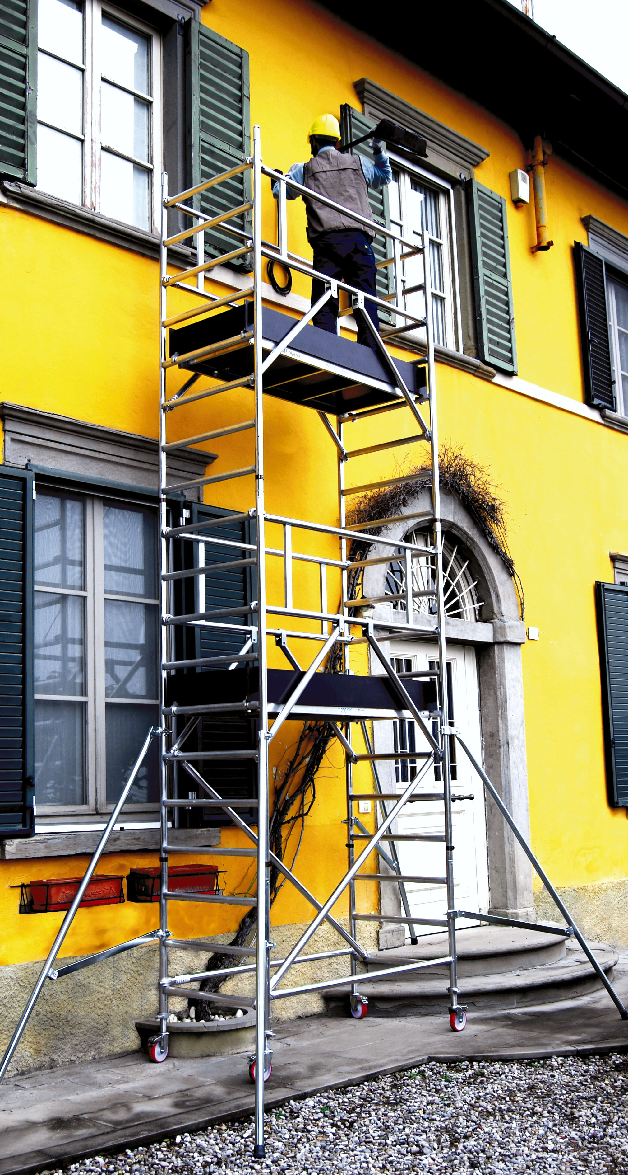 TRABATTELLO PROFESSIONALE IN ALLUMINIO CON ELEMENTI AD AGGANCIO RAPIDO E PARAPETTI AUTOMONTANTI ALTO mt 3,01 CON DIMENSIONI DI BASE mt 0,80x1,60 DOTATO DI: n?4 RUOTE 125mm ANTI-SCHIACCIAMENTO CON FRENO ANTERIORE, n?1 PIANO LAVORO, n?1 FERMAPIEDE, n?2 PARAPETTI AUTOMONTANTI, n?2 TRAVERSE DI BASE ZAVORRATE - VERSIONE CERTIFICATA SECONDO NORMATIVA EUROPEA EN1004-1/2 CON USO SENZA ANCORAGGIO