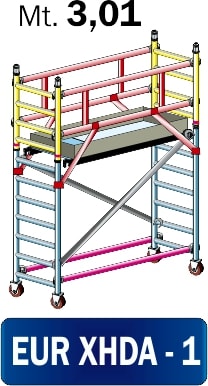 TRABATTELLO PROFESSIONALE IN ALLUMINIO CON ELEMENTI AD AGGANCIO RAPIDO E PARAPETTI AUTOMONTANTI ALTO mt 3,01 CON DIMENSIONI DI BASE mt 0,80x1,60 DOTATO DI: n?4 RUOTE 125mm ANTI-SCHIACCIAMENTO CON FRENO ANTERIORE, n?1 PIANO LAVORO, n?1 FERMAPIEDE, n?2 PARAPETTI AUTOMONTANTI, n?2 TRAVERSE DI BASE ZAVORRATE - VERSIONE CERTIFICATA SECONDO NORMATIVA EUROPEA EN1004-1/2 CON USO SENZA ANCORAGGIO