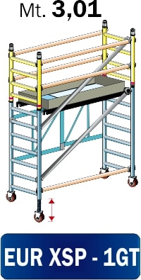 TRABATTELLO PROFESSIONALE IN ALLUMINIO CON ELEMENTI AD AGGANCIO RAPIDO E SEZIONE DI BASE PIEGHEVOLE ALTO mt 3,01 CON DIMENSIONI DI BASE mt 0,80x1,60 DOTATO DI: n?4 LIVELLATORI A VITE CON RUOTA 125mm ANTI-SCHIACCIAMENTO CON FRENO ANTERIORE, n?1 PIANO LAVORO, n?1 FERMAPIEDE, n?2 PARAPETTI - VERSIONE CONFORME SECONDO NORMATIVA ITALIANA D.Lgs.n?81 CON OBBLIGO DI ANCORAGGIO