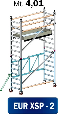 FRIGERIO CARPENTERIE - Ponteggio alluminio per piattaforma pieghevole 160x80 con 1 piano e staffe di supporto incluso. Resistenza massima 4,01 tonnellate.