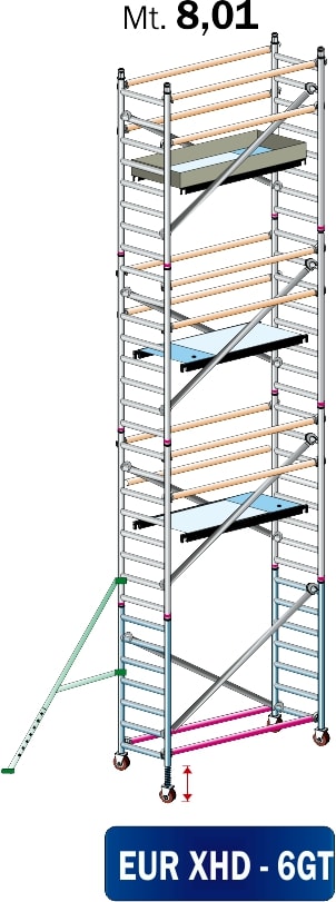FRIGERIO CARPENTERIE - Ponteggio alluminio per piattaforme 160x80 con 3 piattaforme, stabilizzatori e guide in metallo da 8,0 a 8,01 metri.
