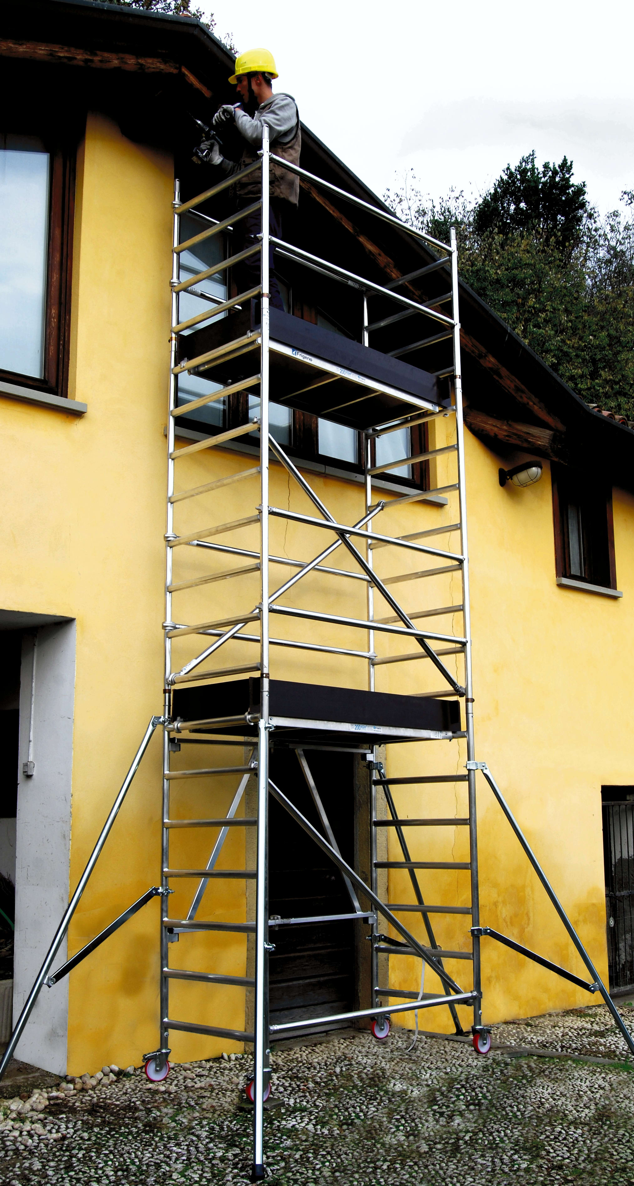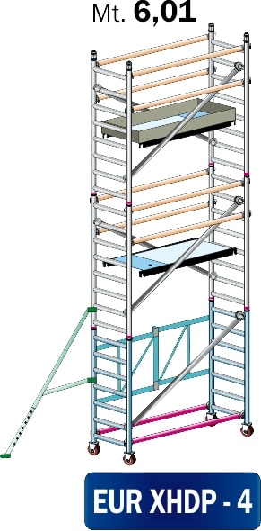 FRIGERIO CARPENTERIE - Ponteggio alluminio per piattaforme pieghevole 160x80 con 2 piattaforme e staffe in metallo 6,01m.