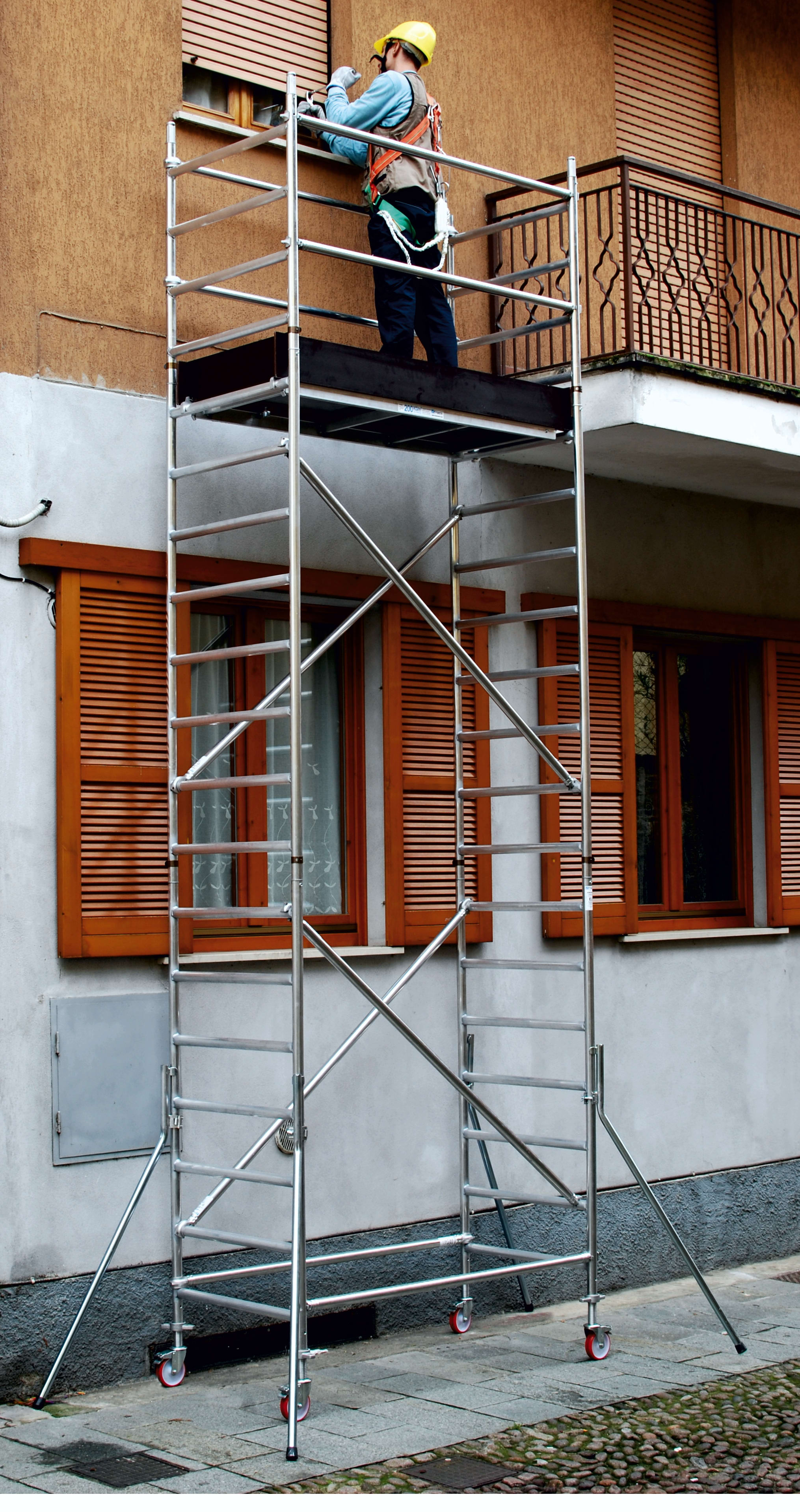 FRIGERIO CARPENTERIE - Ponteggio alluminio portata 160x80 con 1 pianale e stabilizzatori, dotato di maniglie 8,01.