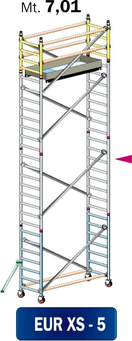 FRIGERIO CARPENTERIE - Ponteggio alluminio portata 160x80 con 1 pianale e stabilizzatori incluso, peso massimo 7,01 kg.